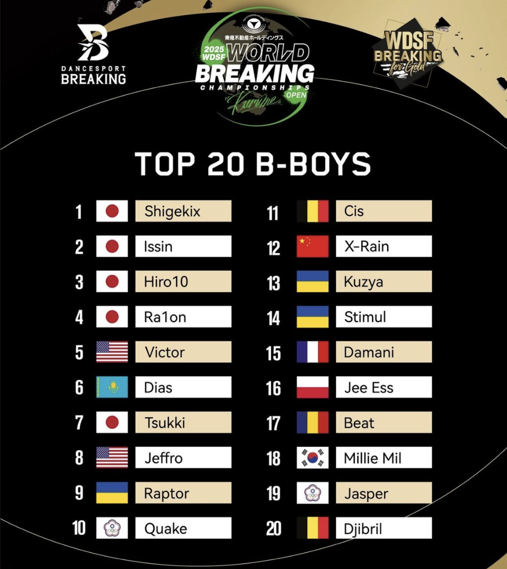 Het seizoen zit erop en de eindstand van de Breaking For Gold Ranking is vastgesteld. Een mooie weerspiegeling van consistentie, ontwikkeling en doorzettingsvermogen. België wordt goed gerepresent door Cis & Djibril die beide een mooie plek hebben in de wereldranking.